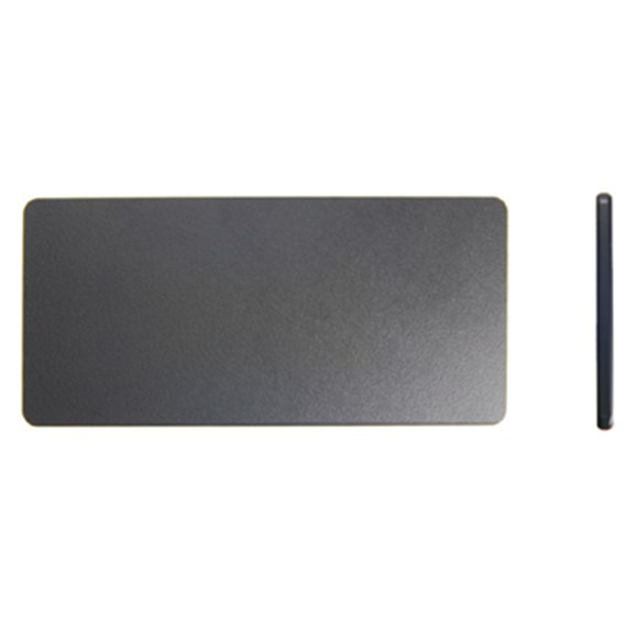 Mål: 149 x 69 x 5 mm. Leveres med skruer og dobbeltklæbende tape på bagsiden. Pladen er sort.