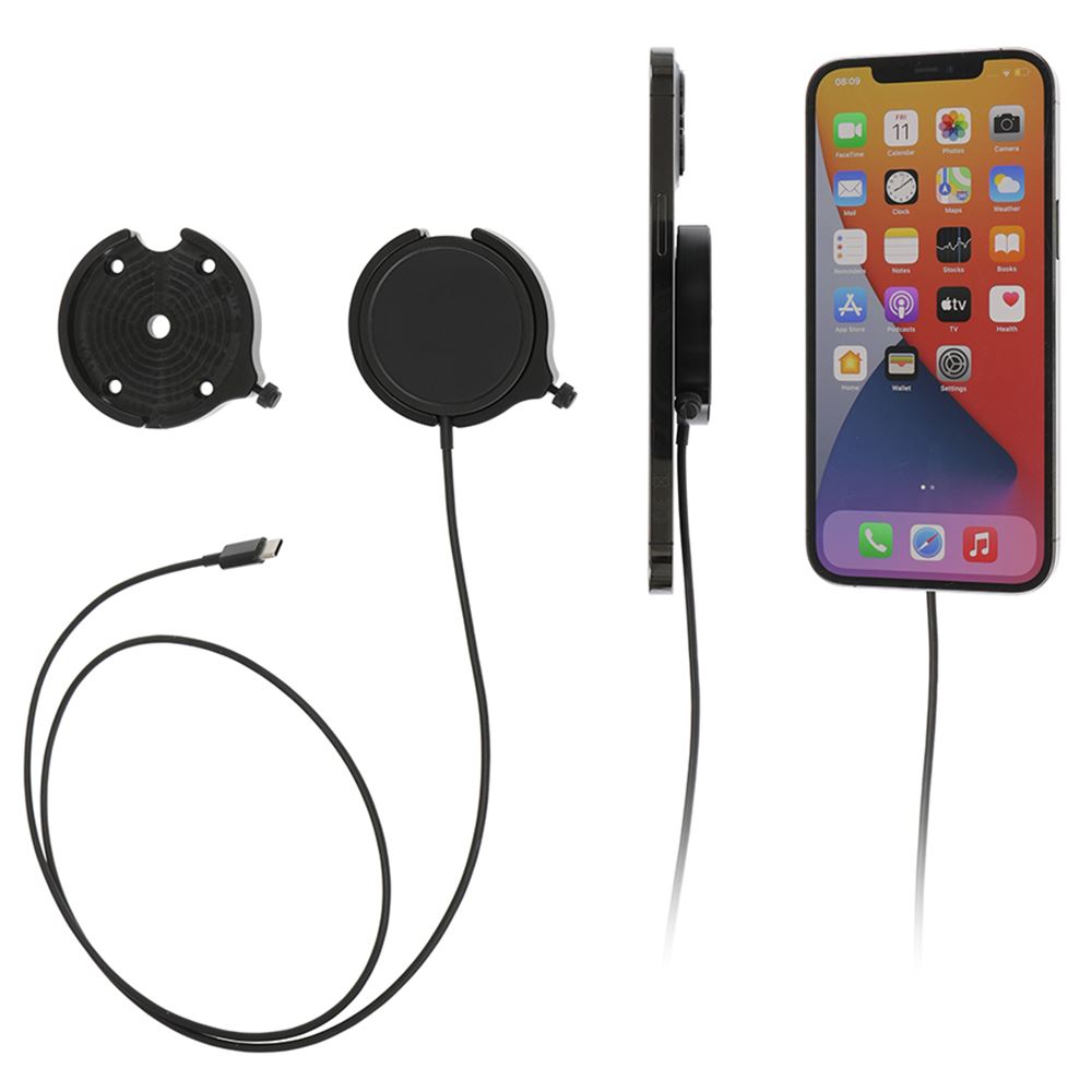 Holderen kan lade med max. 7,5 W, med 1. generations Qi trådløs ladning.