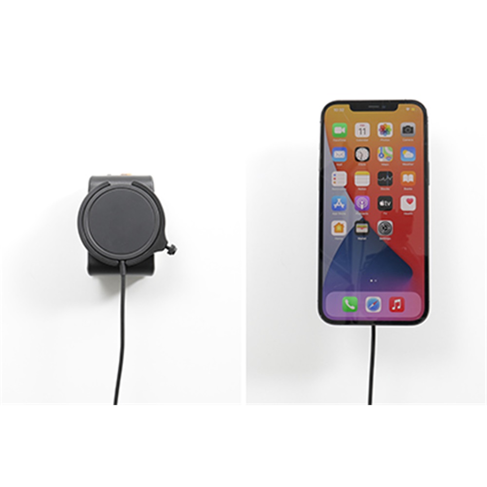 Holderen kan lade med max. 7,5 W, med 1. generations Qi trådløs ladning.