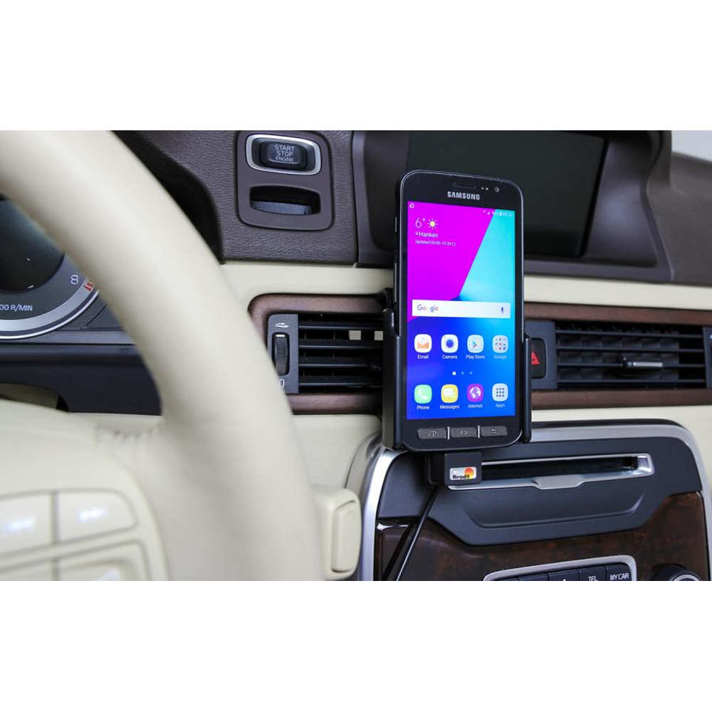 Holderen passer til Samsung Galaxy Xcover 4 og er inklusiv 12/24V ladekabel, så telefonen er ladet op når man når frem.