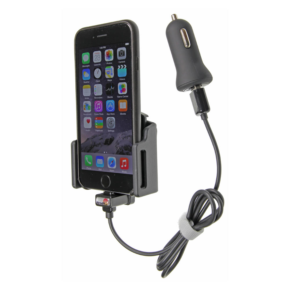 Holderen passer til iPhone 6/6s/7/8/X/Xs/SE2020 og er inklusiv Apple godkendt ladekabel og kraftig USB lader, så telefonen er ladet op når man når frem.