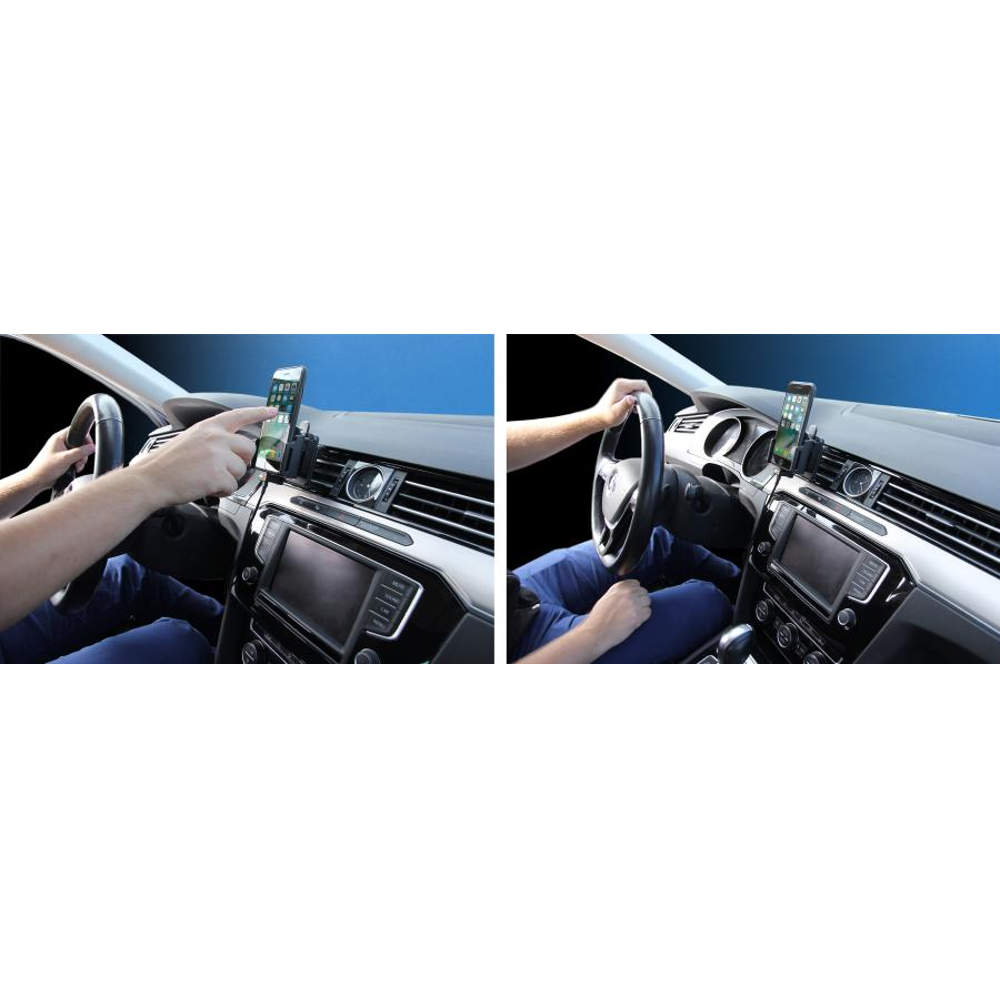 Holderen kan justeres så den passer til telefoner inklusiv cover i en bredde på 62-77mm og 2-10mm tykkelse.
