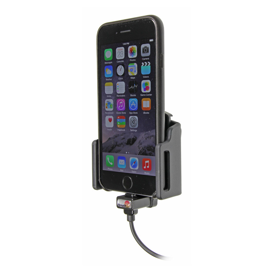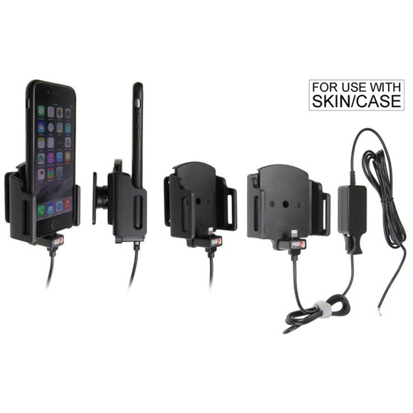 Holderen passer til iPhone 6/6s/7/8/X/Xs/11 Pro og er til fastmonteret strøm. Det vil sige at strømmen skal monteres bag instrumentbordet. Kablet og stikket er godkendt af Apple.