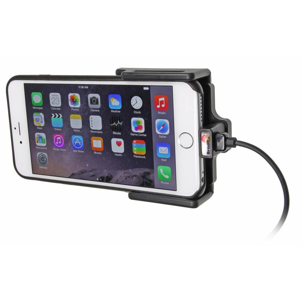 Holderen passer til Apple iPhone Plus'er, XR, XS Max, 11, 11 Pro, 11 Pro Max og er til fastmonteret strøm. Det vil sige at strømmen skal monteres bag instrumentbordet. Holderen leveres med et Apple godkendt kabel.