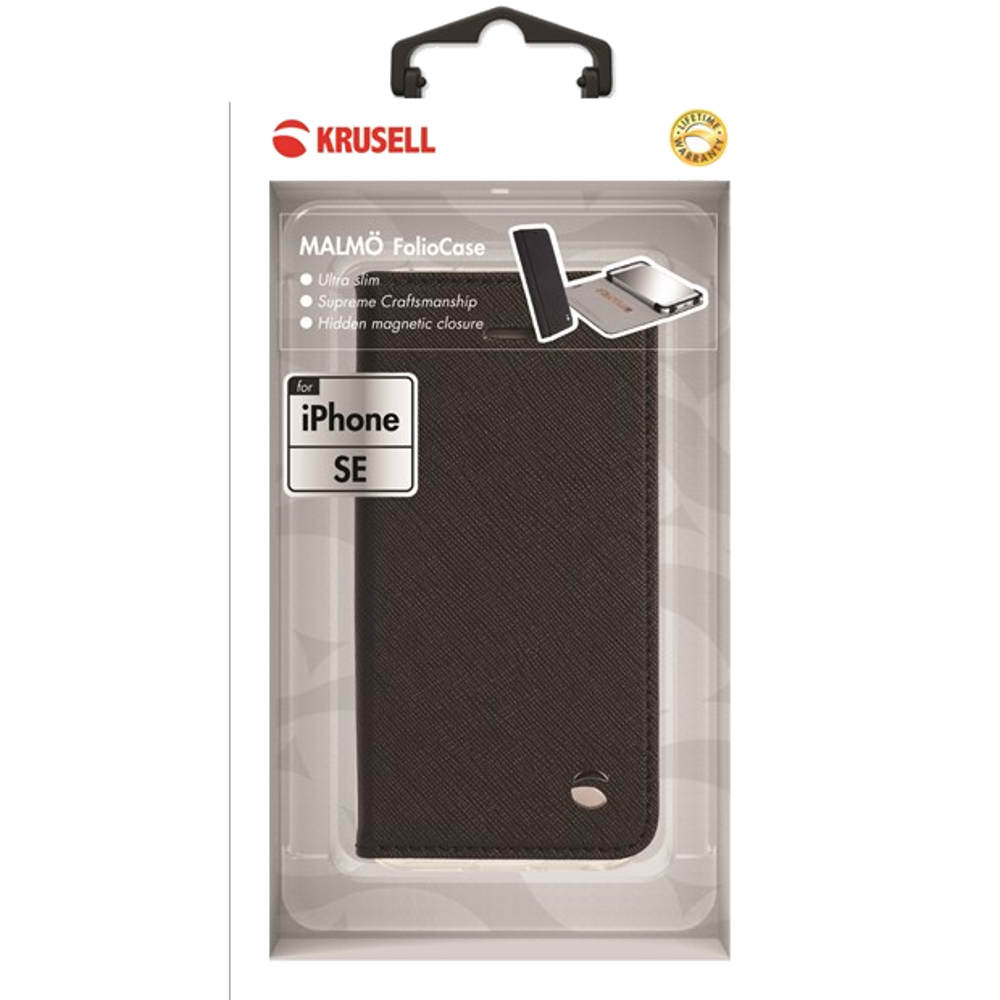 Krusell sort Malmö FolioCase er en fliptaske til iPhone 5/5s/SE som beskytter telefonen både på front og bagside. Tasken har trods sit slanke design fået plads til en kreditkort lomme.