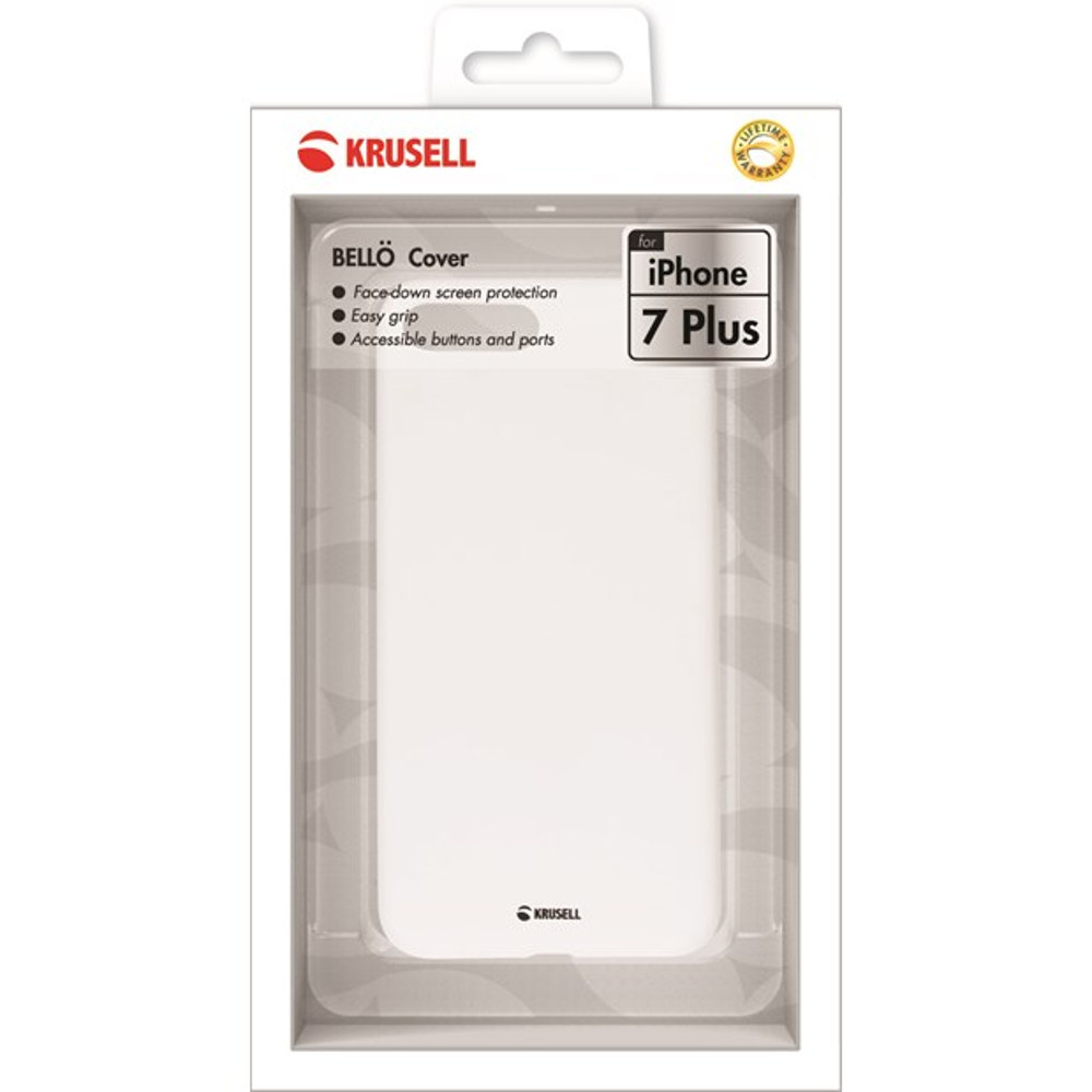 Krusell Bëllo Cover - hvid slim cover til iPhone 7 Plus er et tyndt beskyttelses cover, designet så det beskytter smartphonen på en elegant måde. Leveres i en smart emballage og kan fås i flere farver.