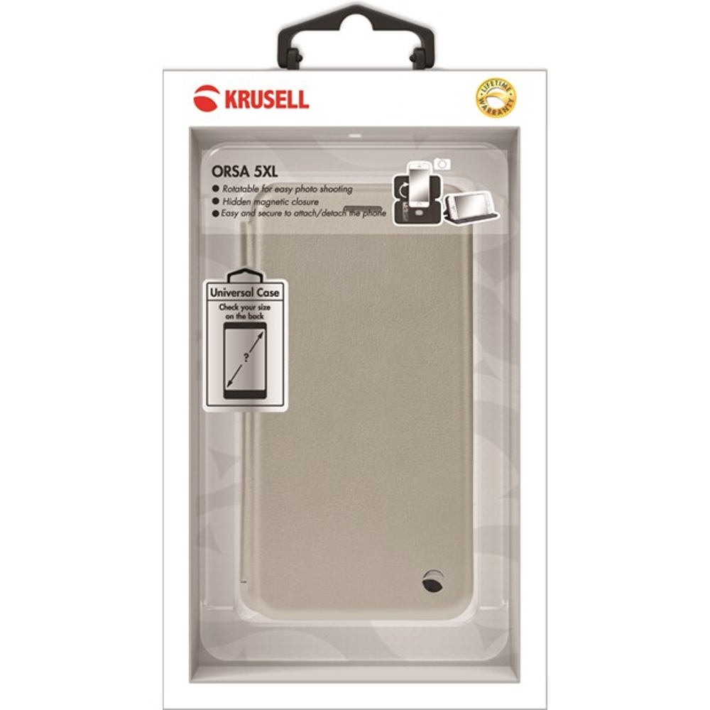 Krusell silver Orsa FolioCase Universal 5XL er en fliptaske, som beskytter telefonen både på front og bagside. Tasken har trods sit slanke design fået plads til kreditkort lomme.