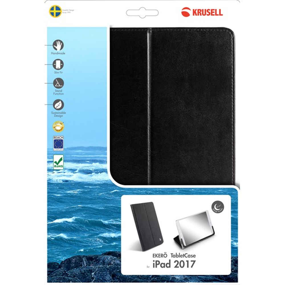 Krusell Ekerö Case - sort taske til For iPad 9.7 2017/2018 og iPad Air 2013, som beskytter tabletten både på front og bagside. Tasken har stand funktion.