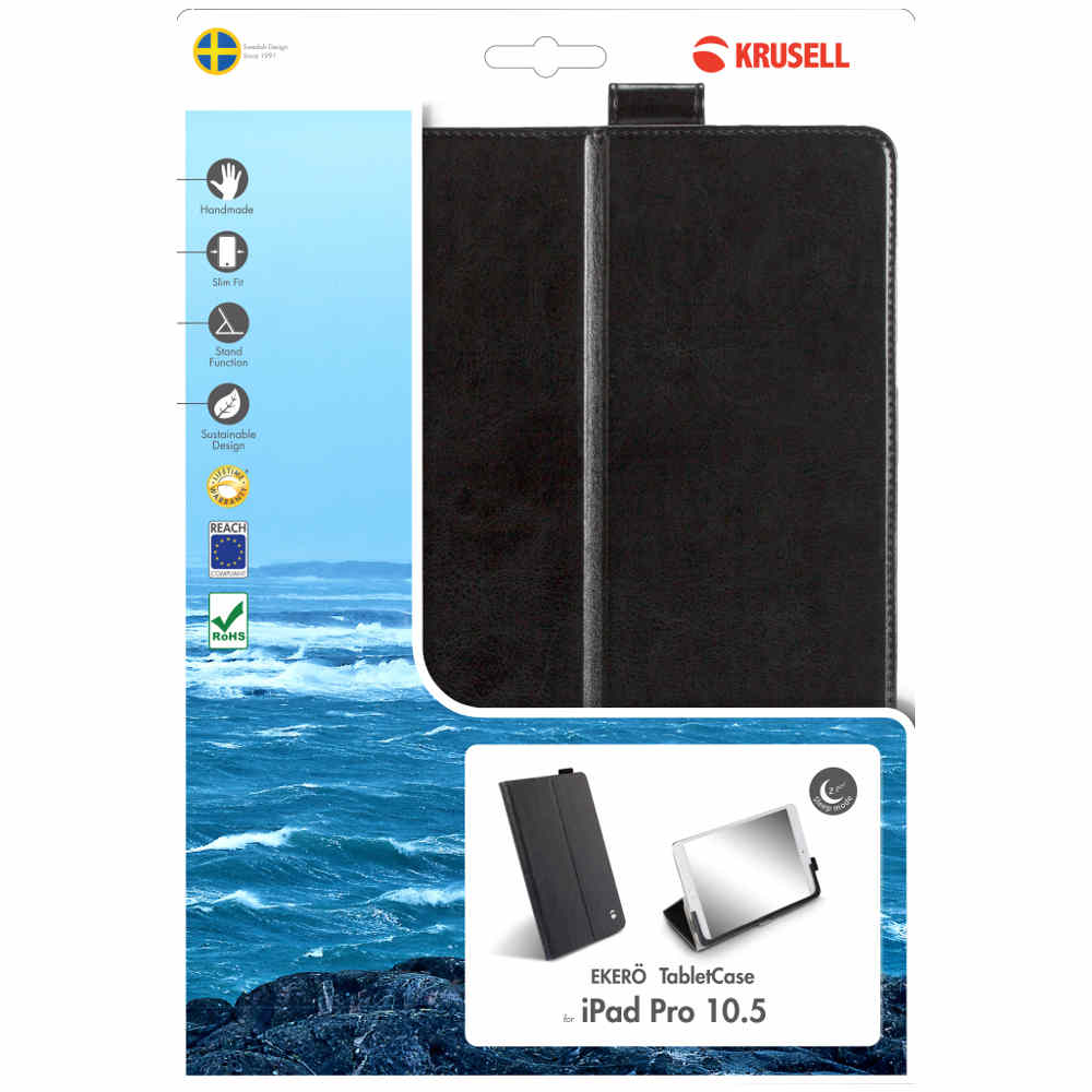 Krusell Ekerö Case - sort taske til For iPad Pro 10.5 som beskytter tabletten både på front og bagside. Tasken har stand funktion.