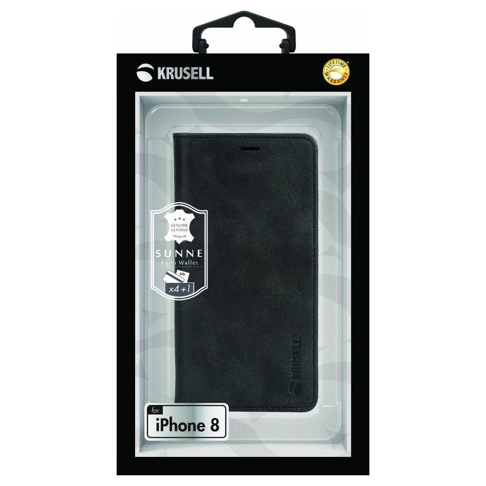 Krusell sort Sunne 4 Card FolioCase er en fliptaske til iPhone X/Xs, som beskytter telefonen både på front og bagside. Tasken har trods sit slanke design fået plads til kreditkort.
