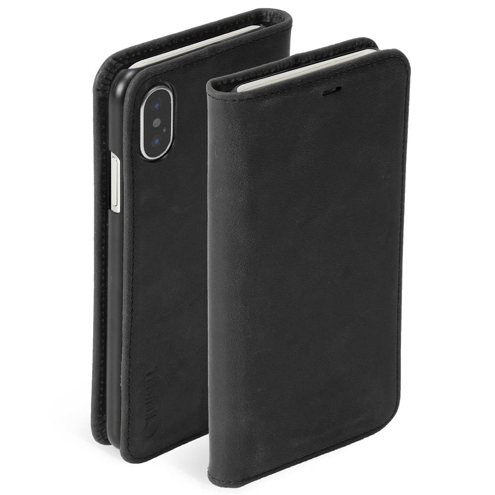 Krusell sort Sunne 4 Card FolioCase er en fliptaske til iPhone Xs Max, som beskytter telefonen både på front og bagside. Tasken har trods sit slanke design fået plads til kreditkort.
