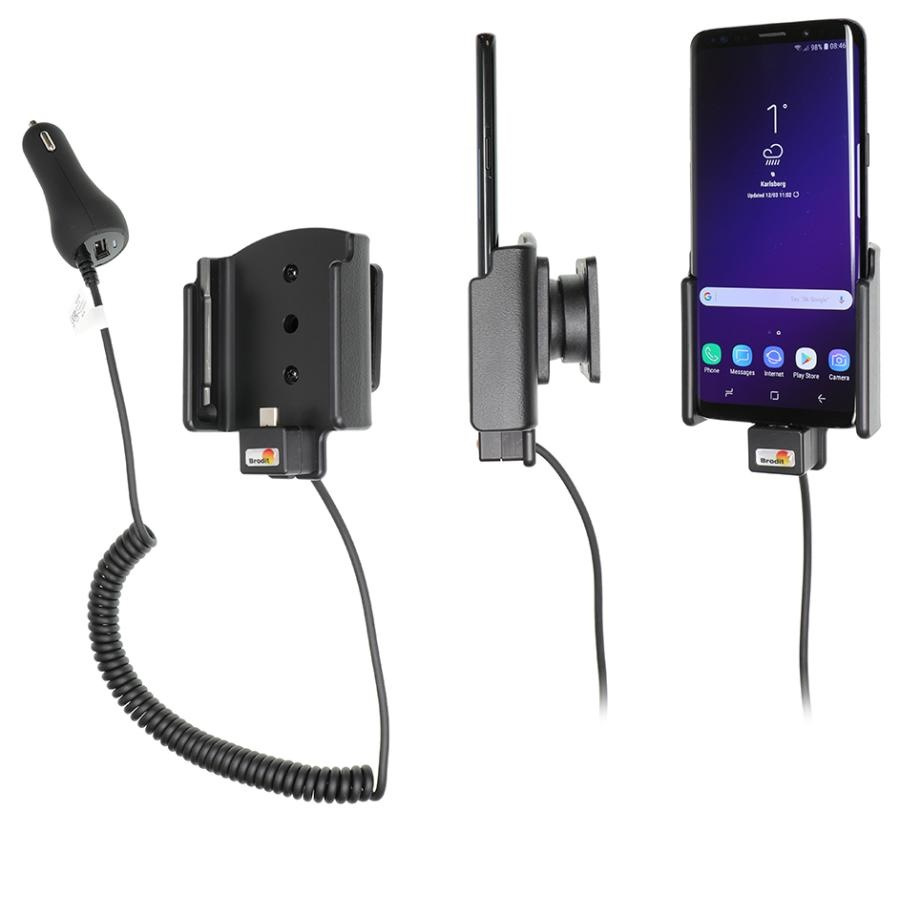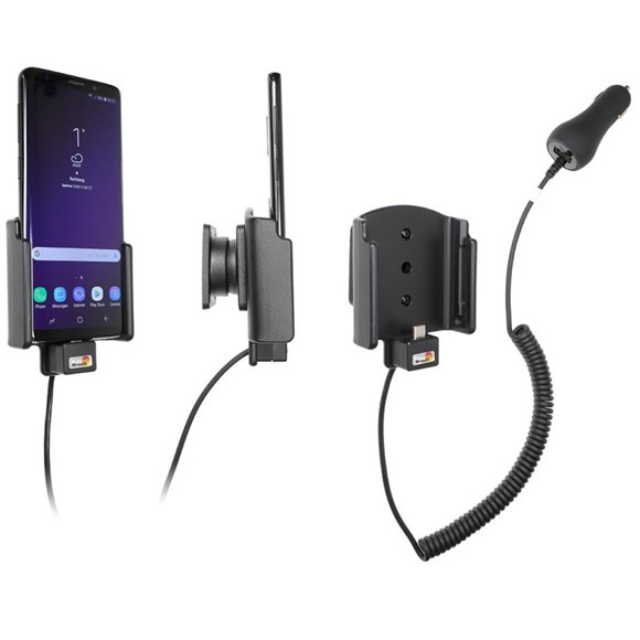 Holderen passer til Samsung Galaxy S9 og er inklusiv 12/24V ladekabel, så telefonen er ladet op når man når frem.