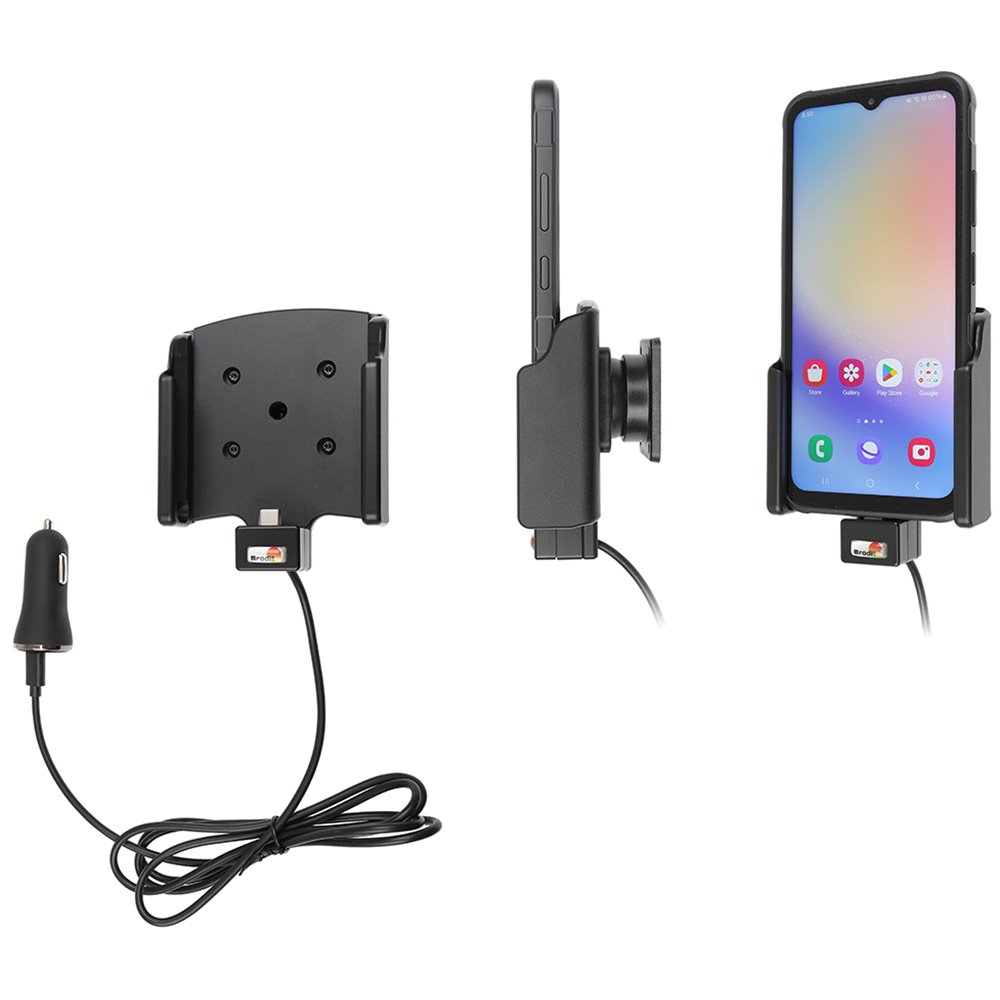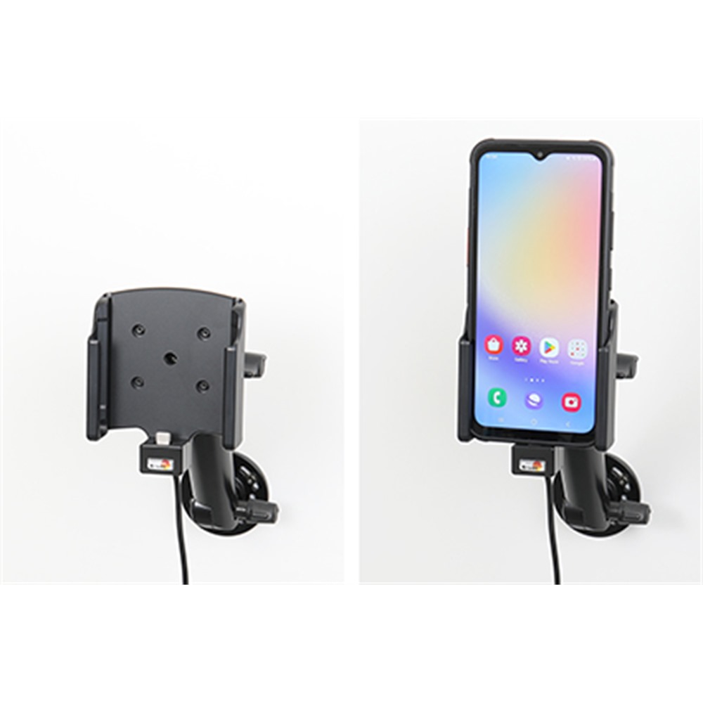 Holderen passer til Samsung Galaxy Xcover 7 og er inklusiv 12/24V ladekabel med USB-C ladestik og et cigarstik, så telefonen er ladet op når man når frem.