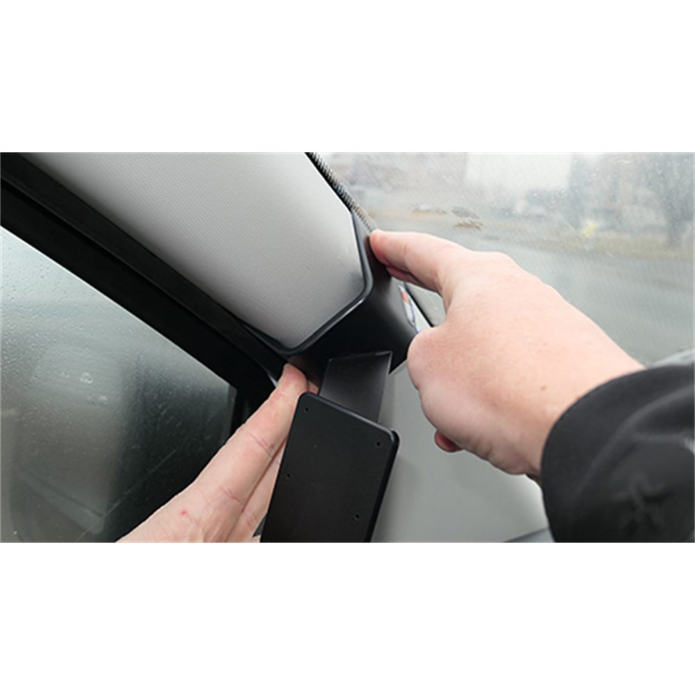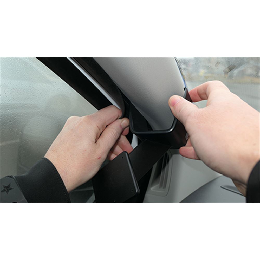 Dette beslag er et A-stolpe beslag, altså til montering til venstre for rattet i dør stolpen.