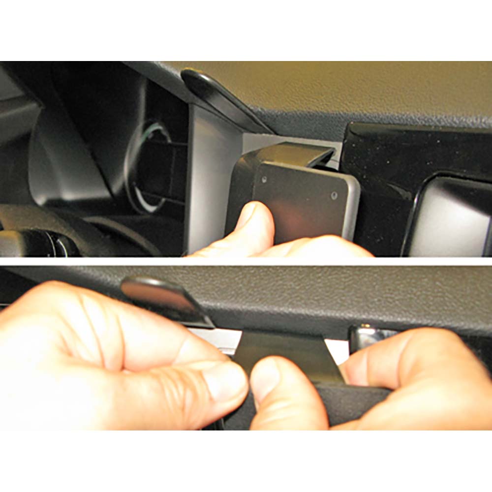 Brodits ProClip er et smart beslag i plast til montering i biler. Beslaget monteres nemt og hurtigt uden at bore huller eller ødelægge instrumentbordet.