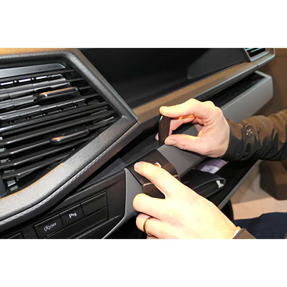 Brodits ProClip er et smart beslag i plast til montering i biler. Beslaget monteres nemt og hurtigt uden at bore huller eller ødelægge instrumentbordet.