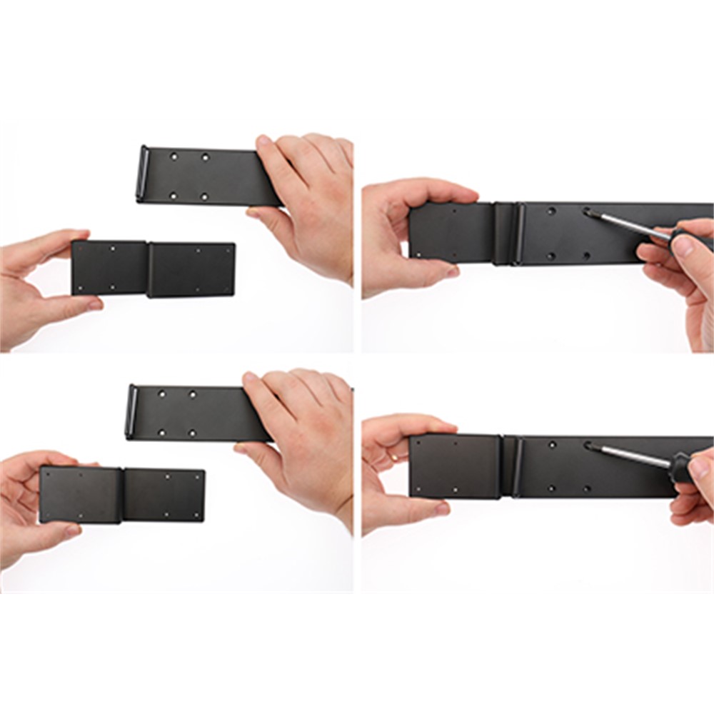 Beslaget kan sættes sammen så man kan placere det på højre eller venstre side af skærmen.