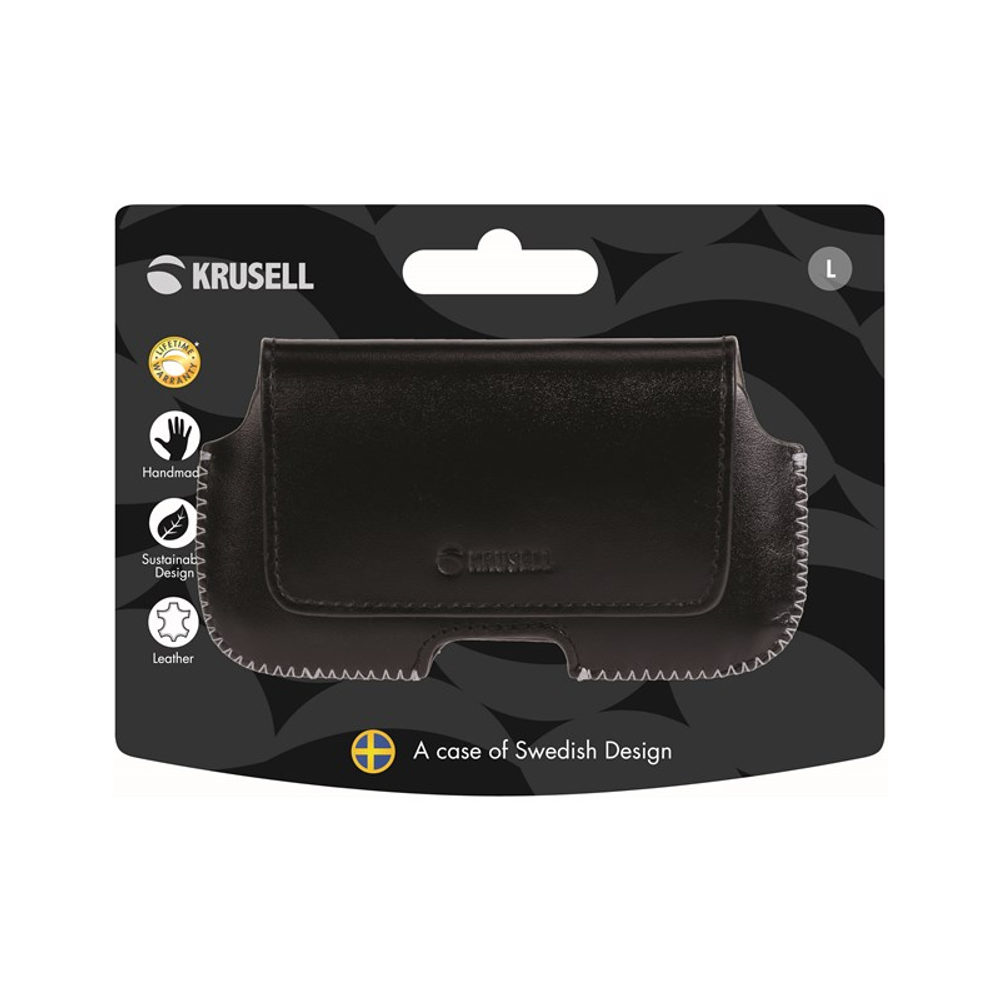 Krusell Hector Large er en sort universal vandret taske i ægte læder. Tasken sørger for at telefonen er beskyttet når den ikke bruges. På bagsiden har tasken to stropper til bælte gennemføring. Taskerne fås i mange størrelser, og leveres i en smart emballage.