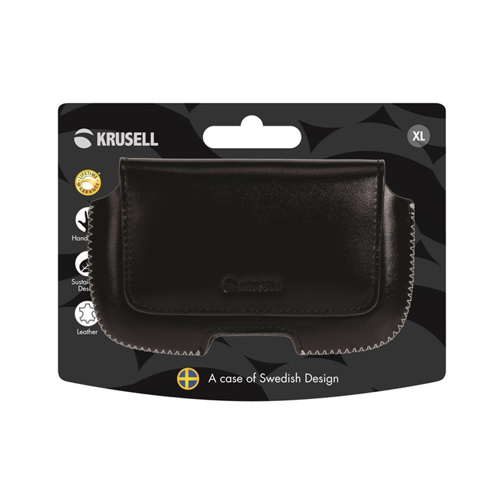 Krusell Hector extra large er en sort universal vandret taske i ægte læder. Tasken sørger for at telefonen er beskyttet når den ikke bruges. På bagsiden har tasken to stropper til bælte gennemføring. Taskerne fås i mange størrelser, og leveres i en smart emballage.