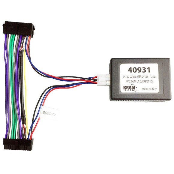 Audio2Car adapter, varenummer AA305, anvendes til at konvertere 24 Volt til 12 Volt på et Audio2Car kabel.