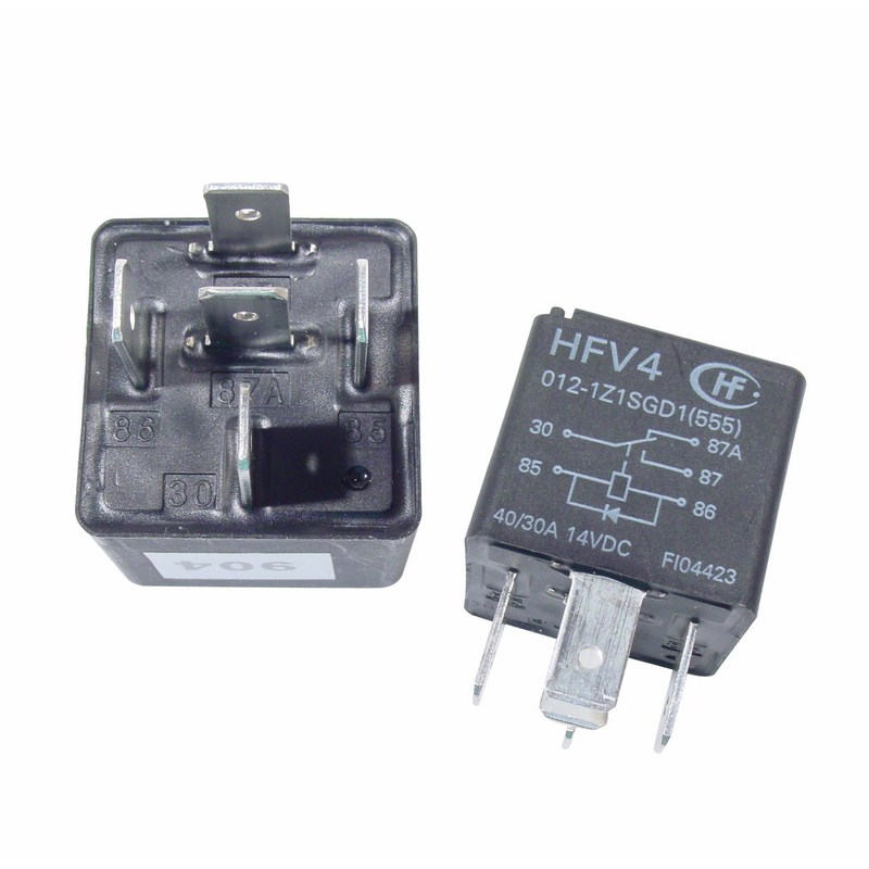 Automotive relæ. 40A med NO & NC kontaktsæt (SPDT) Med beskyttelses diode. Vandtæt. Type: HongFa HFV4/12-1Z-1SG-D1(555)