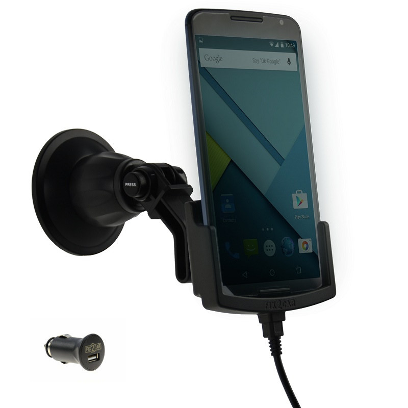 Holderen passer til Motorola Nexus 6, og er inklusiv ladekabel og kraftig 12/24V USB lader, så telefonen er ladet op, når man når frem.