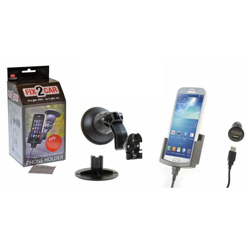 Holderen passer til Samsung Galaxy S4, og er inklusiv ladekabel og kraftig 12/24V USB lader, så telefonen er ladet op, når man når frem.