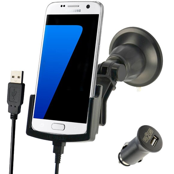 Holderen passer til Samsung Galaxy S7, og er inklusiv ladekabel og kraftig 12/24V USB lader, så telefonen er ladet op, når man når frem.