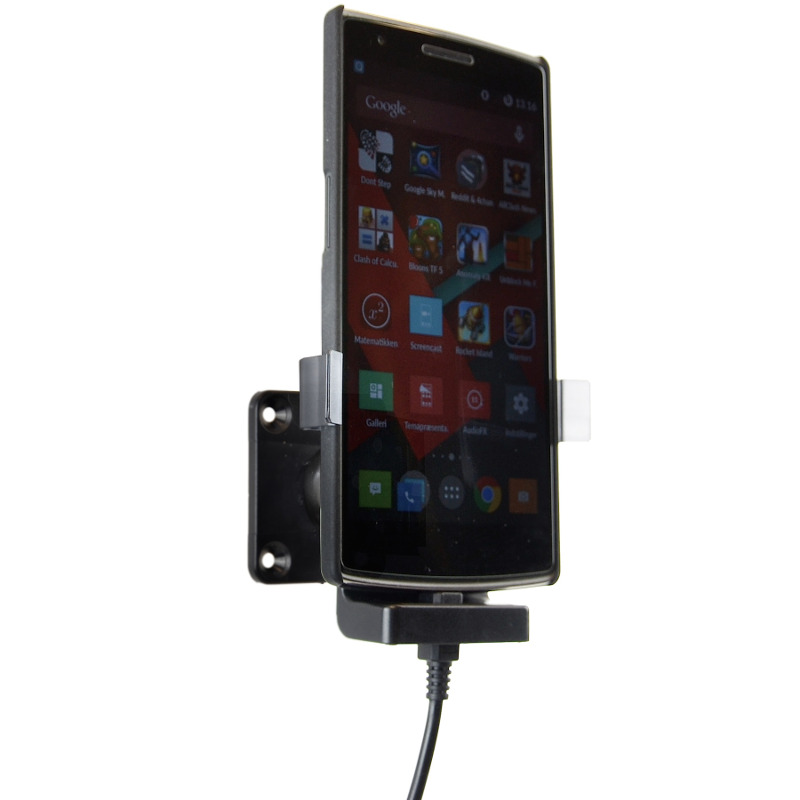 Holderen passer til OnePlus One, og er inklusiv ladekabel samt kraftig 12/24V USB lader, så telefonen er ladet op, når man når frem.