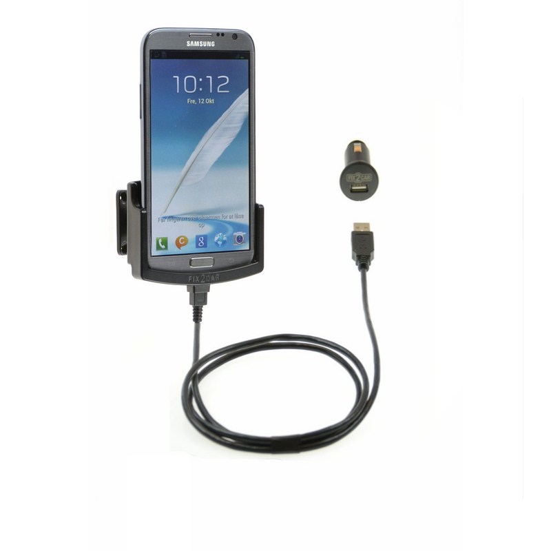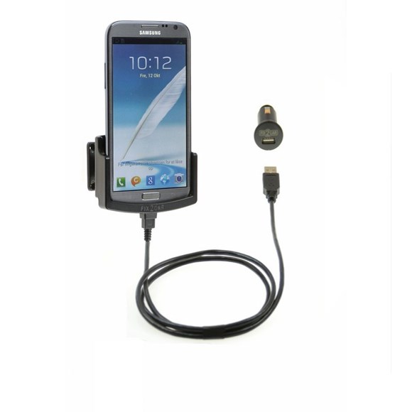 Holderen passer til Samsung Galaxy Note II, og er inklusiv ladekabel samt kraftig 12/24V USB lader, så telefonen er ladet op, når man når frem.