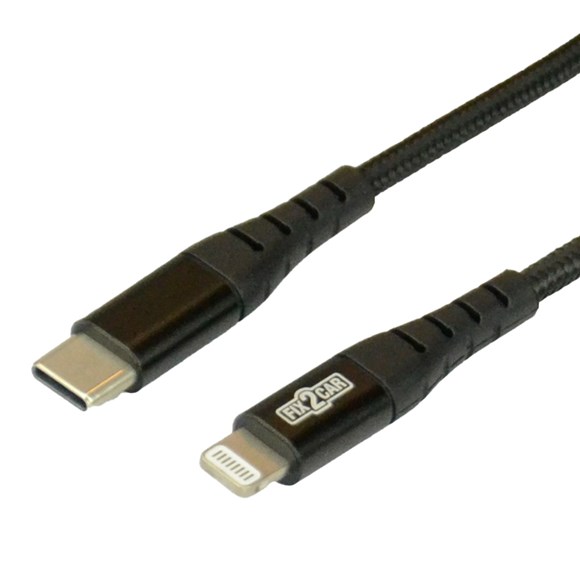 Fix2Car MFi Lightning til USB-C Data-/Ladekabel - sort - 1,0 meter. Kablet kan anvendes til alle iPhones med Lightning stik. Kablet leveres som MFi "Made for iPhone", godkendt af Apple.