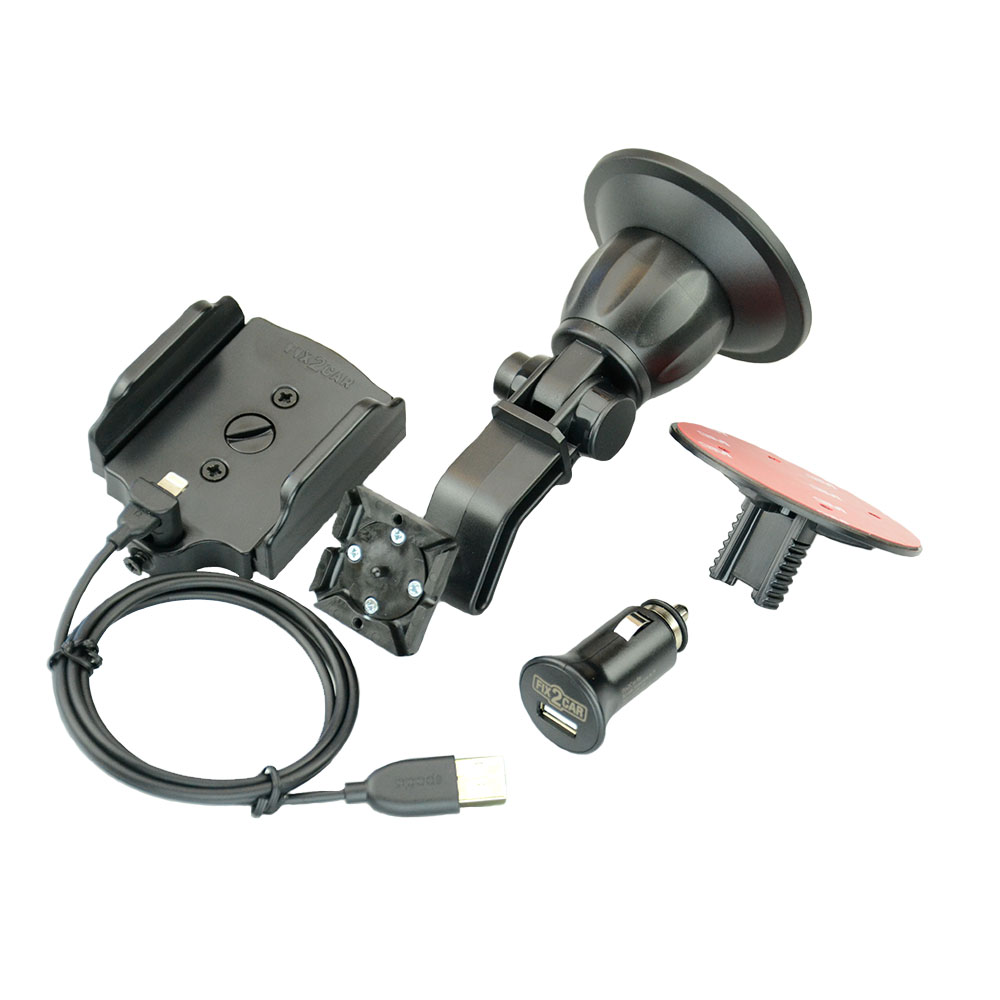 Holderen passer til Apple telefoner med Lightning stik, og er inklusiv ladekabel og kraftig 12/24V USB lader, så telefonen er ladet op når man når frem.