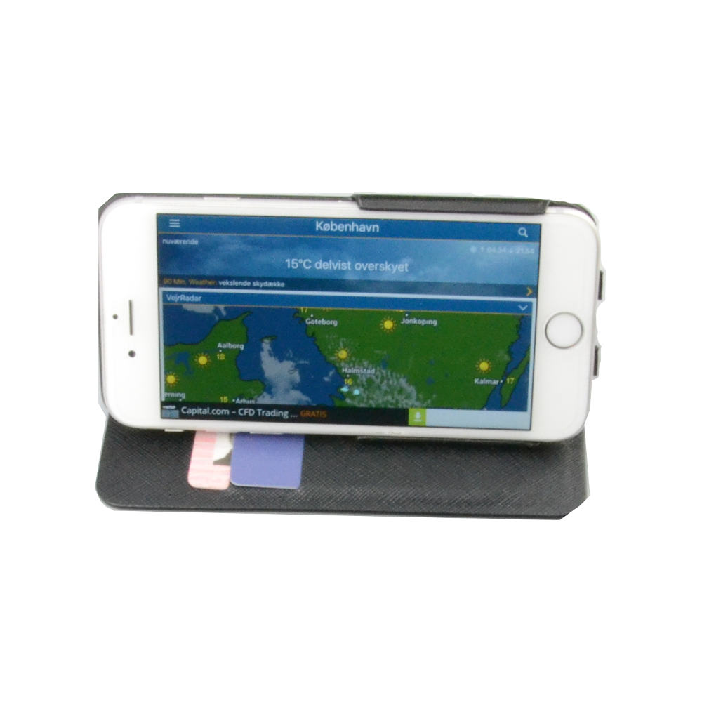 Griffin Booklet Wallet i sort er et beskyttelsescover til iPhone 6/6s. Coveret kan åbnes som en bog og har åbninger til knapper og porte. Coveret har på indvendig side plads til 2 kreditkort, ID-kort eller kontanter. Coveret har transparent vindue, så skærmens område ikke formindskes