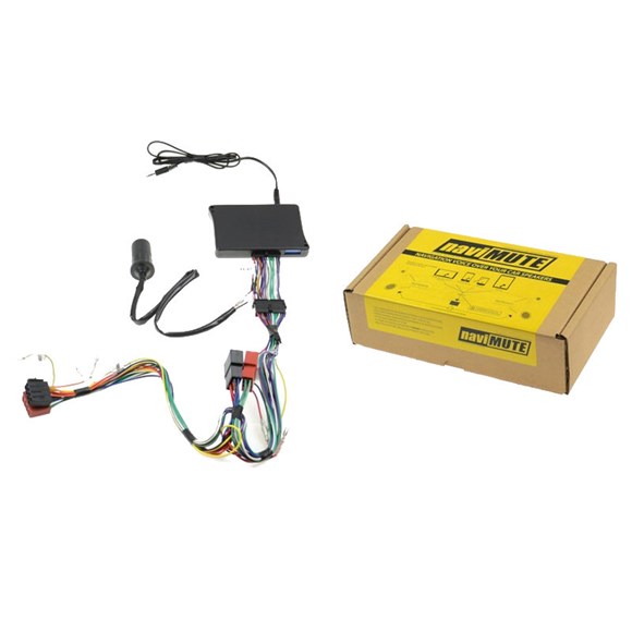 NaviMute-Box gør det muligt at høre lyden fra din eksterne navigation eller navigation på din smartphone via bilens højttalere. bestem selv lydstyrken og om lyden skal være i begge eller kun i enkelte højttalere. NaviMute-Box installeres ved hjælp af et Audio2Car kabel og et 3,5 mm Jack stik. Pakken indeholder, ud over boksen, også et 3,5 jack stik og en adaptor for 12 Volt hun cigarstik.